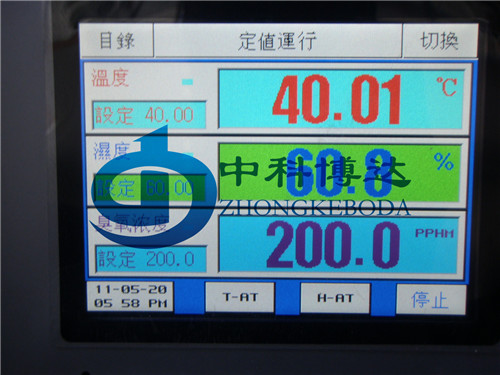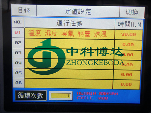 二、臭氧老化試驗箱的溫度、濕度及臭氧濃度設置可通過主界面點擊想對應位置來去設定貨修改參數(shù),臭氧老化試驗試驗箱定時設定可通過觸摸屏里的時間設定菜單來設置(H:小時、M:分鐘),如2小時30分鐘,則設定“02H30”,設好后點擊主界面右下角的運行開關,則可啟動試驗箱。